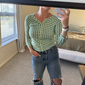 Anthropologie Moth Green Gingham Lightweight Cardigan