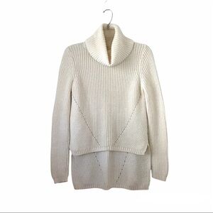 Anthropologie Moth High Low Hem Cowl Neck Knit Ivory Wool Blend Sweater