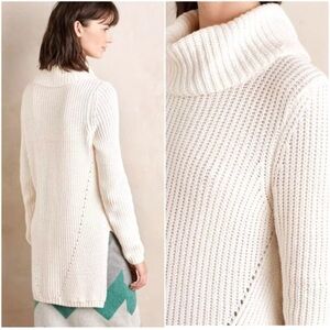 Anthropologie Moth high low hem cowl neck knit ivory wool blend sweater.