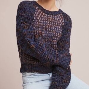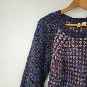 Anthropologie Moth Hillwalk Sweater Size XS Marled Blue Purple Crewneck Wool