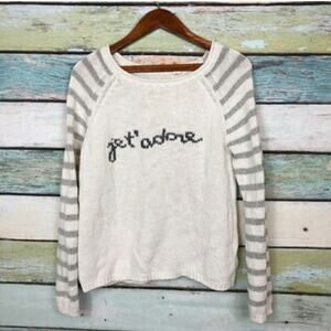 Cute striped sleeve sweater with glittery French Jet Adore on front.