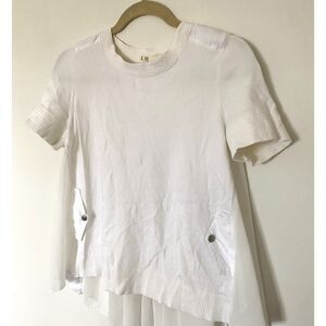 Anthropologie Moth Knit Chiffon Blend High Low Top Faux Pockets Pleated Back XS
