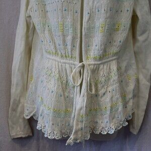 Anthropologie Moth Lace Cardigan Sweater LG Spring Pastel Feminine Linen