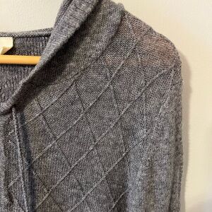 Anthropologie Moth Lace Up Diamond Weave Hooded Wool Blend Sweater Gray Small