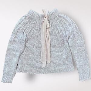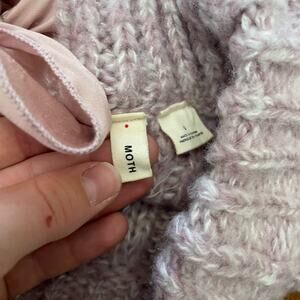 Anthropologie Moth Lavender Pink Coquette Boho Bow Back Sweater, Chunky knit, ties in back. Cover photo is the back of the sweater.