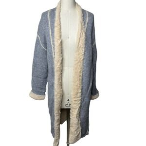 Anthropologie Moth Longline Open Front Cardigan Fur Lined Gray Womens S $200
