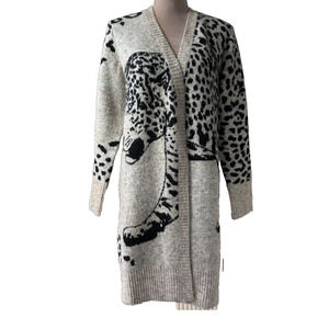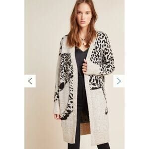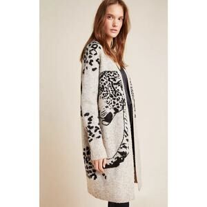 Anthropologie Moth Lucerne Leopard Longline Cardigan Sweater Small Open Front