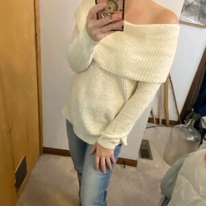 Anthropologie Moth Lucerne Off Shoulder Ecru Chenille Sweater