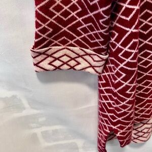 “Galena” cowl neck, geometric print, high low hem, cuffed 3/4 length sleeve sweater by Moth, an Anthropologie brand.