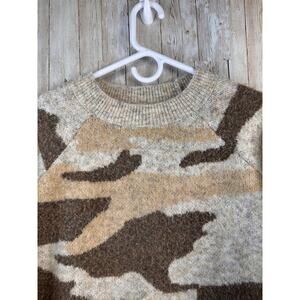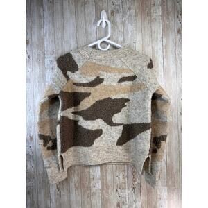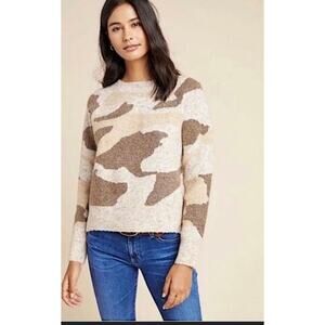 Anthropologie Moth Marjorie Cropped Sweater Womens S Oatmeal Brown Camo Pullover