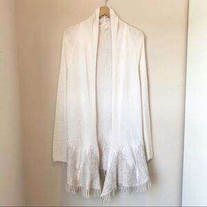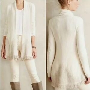 Anthropologie Moth Nevis Cream Fringe Wool Alpaca Cardigan size LP bohemian