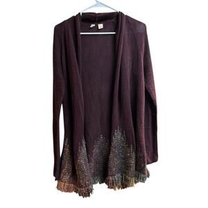 Anthropologie Moth Nevis Open Front Cardigan Sweater Medium Fringe Hem