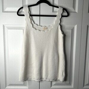 Anthropologie Moth Newport White Scalloped Knit Tank Top Women's Size Medium