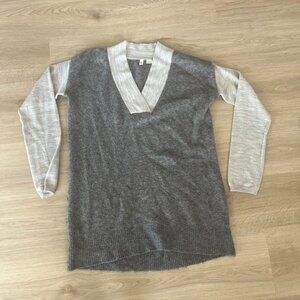 Anthropologie Moth Oatmeal Gray Colorblock Wool Alpaca Vneck Sweater Size Small