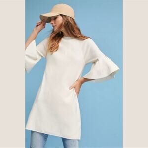 Anthropologie Moth Off White Chester Bell Sleeves Sweater Tunic Dress Size XS