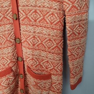 Anthropologie Moth Orange Wool Blend Dimensional Jacquard Duster Cardigan