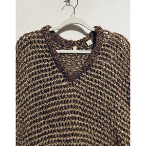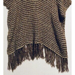 Anthropologie Moth Poncho Womens One Size Brown Ivory Amaris Fringe V Neck Boho