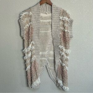 Moth Anthropologie Shag Shaggy Open Front Cardigan Vest Sweater Size XS/S Beige