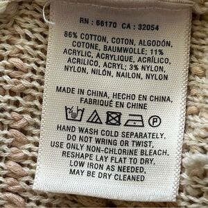 Moth Anthropologie Shaggy Cardigan Sweater, Open Front, XS/S, Beige, Long Length, Sliced Open Back, Cotton Blend, 86% Cotton, 11% Acrylic, 3% Nylon, Boho Style, Lightweight Layer, Excellent Condition, Smoke-Free Home, Fast Shipping, Ships Within Two Days