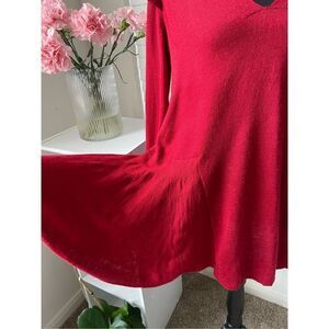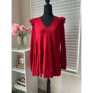 Anthropologie Moth Red Wool Ruffle V-Neck Long Sweater Tunic - Size Small