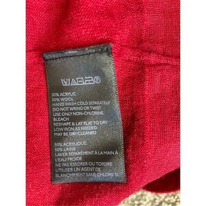Elevate your wardrobe with this feminine and cozy **Anthropologie Moth Red Wool Ruffle V-Neck Sweater**. The **ruffle details** at the shoulders and flattering **V-neckline** add an elegant touch, while the high-quality wool-acrylic blend ensures warmth and durability, perfect for the cooler months.