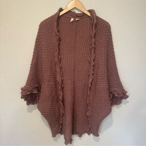 Chic ruffled knit sweater by Moth. Soft mauve color. Ideal for layering.