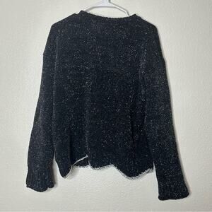 Anthropologie Moth Shimmer Black Crew Neck Knit Sweater Small