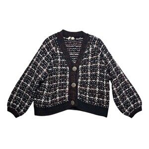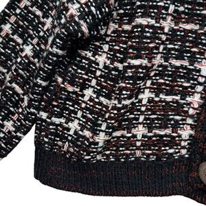 Anthropologie Moth Sweater Cardigan Women's Large Black Red Check Drop Shoulders