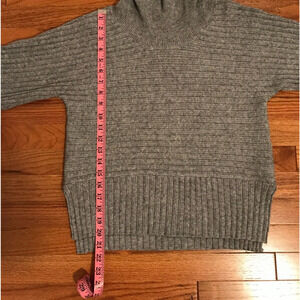 Anthropologie Moth Tisbury Gray Turtleneck Ribbed Diagonal Chevron Sweater - XSM