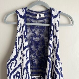 Anthropologie Moth Turson Netted Crochet Tassel Vest in Navy & Cream, M/L