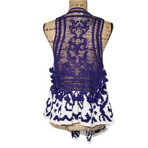 Anthropologie Moth Turson Netted Tassel Vest Size XS Sweater Knit
