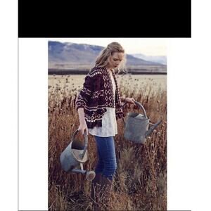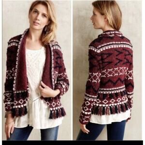 Anthropologie Moth Vera Fringe Cardigan XS S Sweater Aztec Cotton Red Cream Fall
