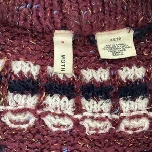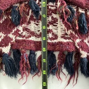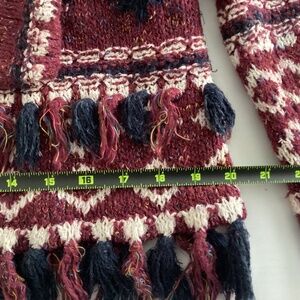 Anthropologie Moth Veras Fringed Cardigan Aztec Knit Sweater XS Burgundy