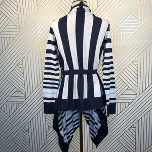 Anthropologie Moth Waterfall Sweater Cardigan Striped Tie Gray Blue Size XS
