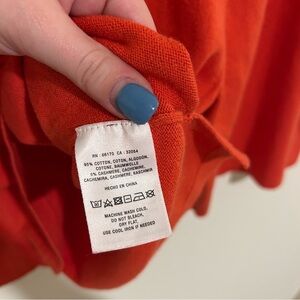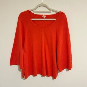 Anthropologie Moth Wide 3/4 Sleeve V Neck Cotton Cashmere Blend Red Sweater