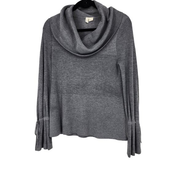 Anthropologie Moth Women's Gray Funnel Neck Tie Sleeve Detail Sweater Size Small