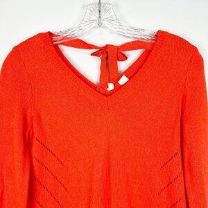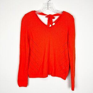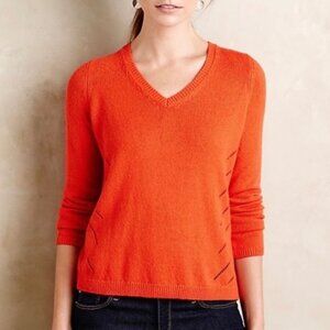 Anthropologie Moth Womens Orange Tie Back Cashmere Sweater V Neck size XS