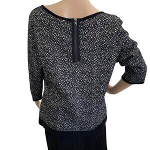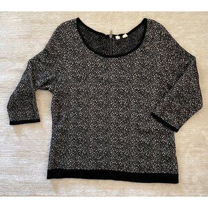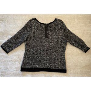 Luxurious Moth Brand pullover sweater for women in XL size. Gorgeous black and white design with a scoop neckline and 3/4 length sleeves. Made from a blend of rayon, nylon, and cotton.