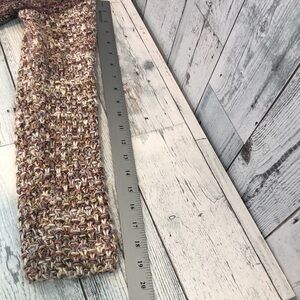 Multicolored, red metallic thread throughout, shawl style collar, some cable knit detailing, soft, open front, colors may vary due to lighting, good used condition, size: S