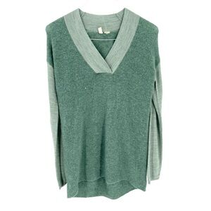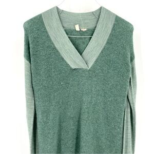 Anthropologie Moth Wool Alpaca Blend Two Tone Green VNeck Tunic Sweater