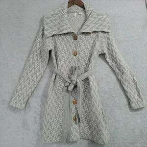 Anthropologie Moth Wool Blend size M Herringbone Knit Belted Pea Coat Gray 26CT