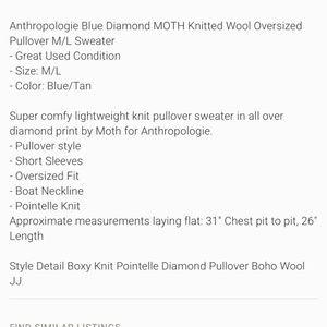 Anthropologie Moth oversized Diamond short sleeve sweater. Worn twice.