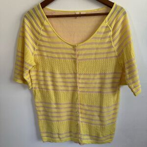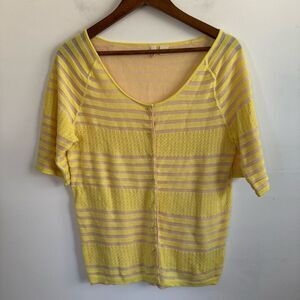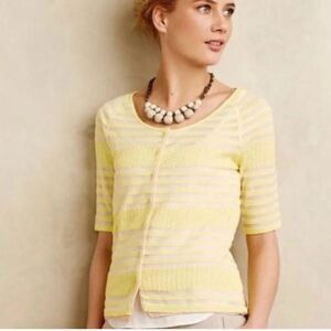Anthropologie Moth yellow beige striped short sleeve cardigan size Large