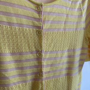 Brighten your wardrobe with this stylish yellow striped top. Perfect for casual outings, it offers comfort and a chic look.