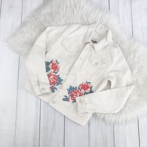 🆕 Anthropologie Mother Bruiser Cropped Embroidery Denim Jacket Size Medium