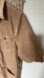 Stylish tan dress with button-up front and belted waist. Features short sleeves and front pockets.