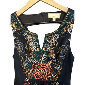 Anthropologie Moulinette Soeurs Embroidered Black Dress Size 4 Sleeveless Cutout