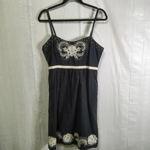 Anthropologie Moulinette Soeurs Embroidered Black Dress Size 8