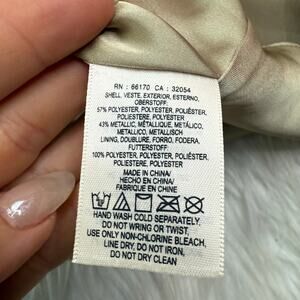 Gently used condition. 57% Polyester, 43% Metallic. Please see pictures for measurements. Smoke free home.