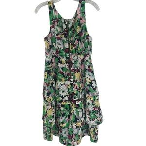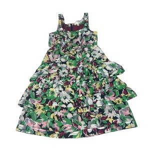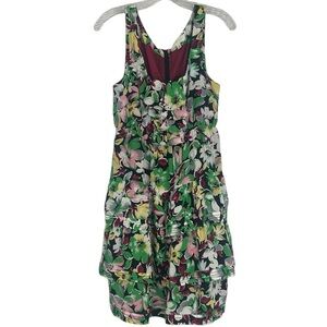 Anthropologie Moulinette Soeurs Floral Tiered Silk Green Purple Mini Dress SZ 8